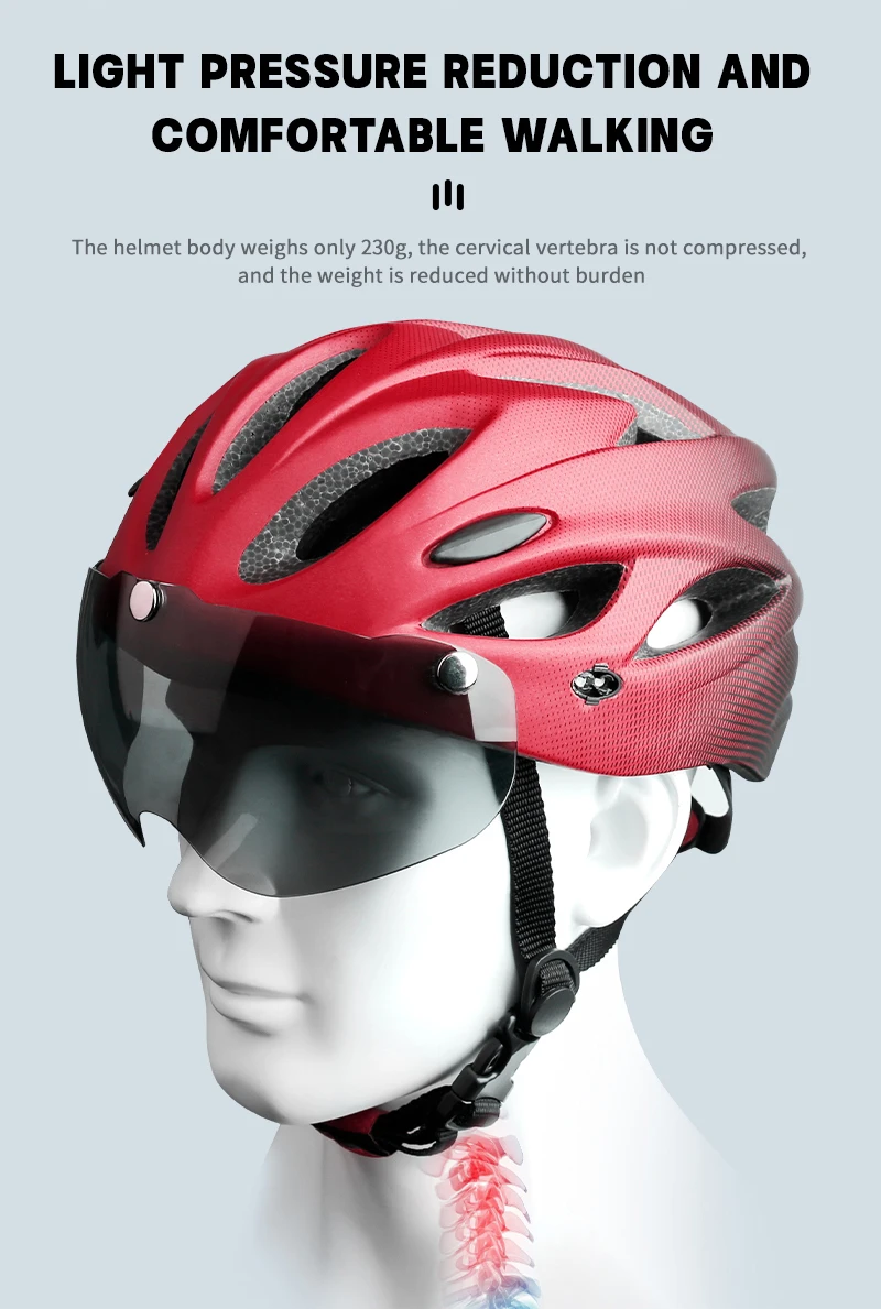 【Adjustable Fit System】Biking helmet with a standard size, equipped with the easy-use dial system and side straps make this mountain bike helmet adjustable to different head size 58cm-62cm(22.44''-24.41'') and fit most cycling riders both men and women. Super light-weighted 270g(0.59lbs) bike helmets for adults will not cause any burden to the rider's head during cycling.