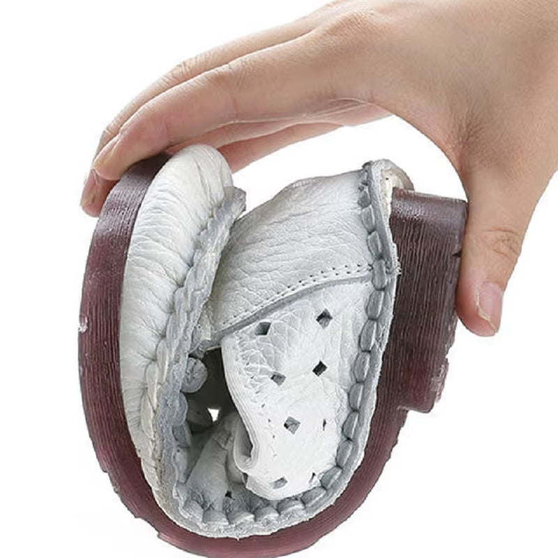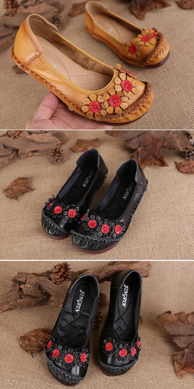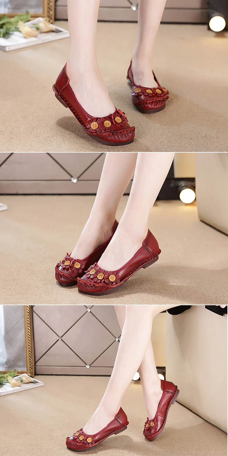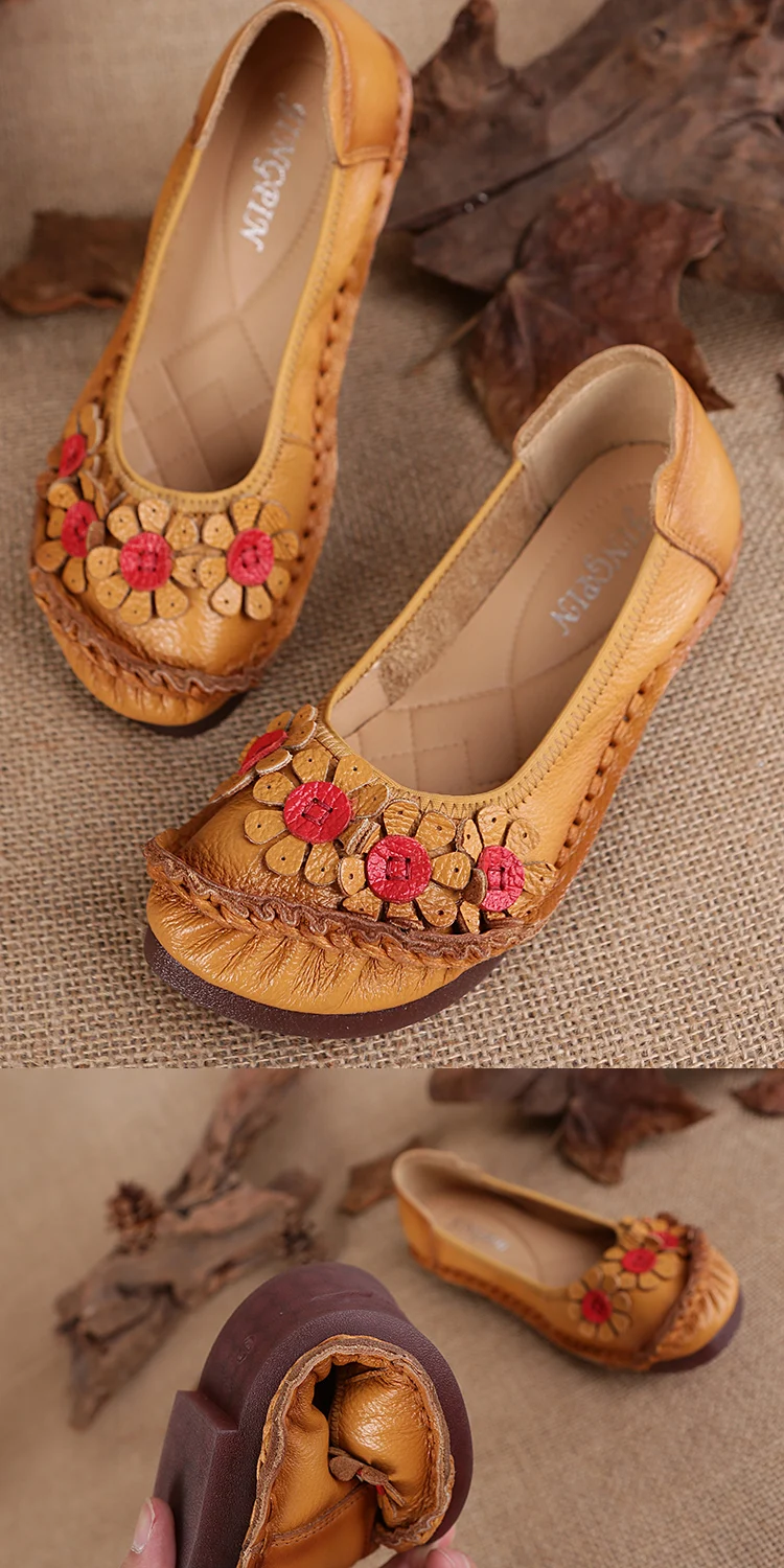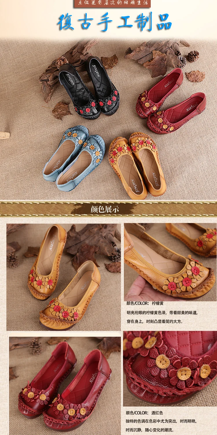 Blue Mom Casual Flats Woman Soft Floral Oxford Shoes for Women Summer Genuine Leather Shoes Ladies Handmade Sewing Flats