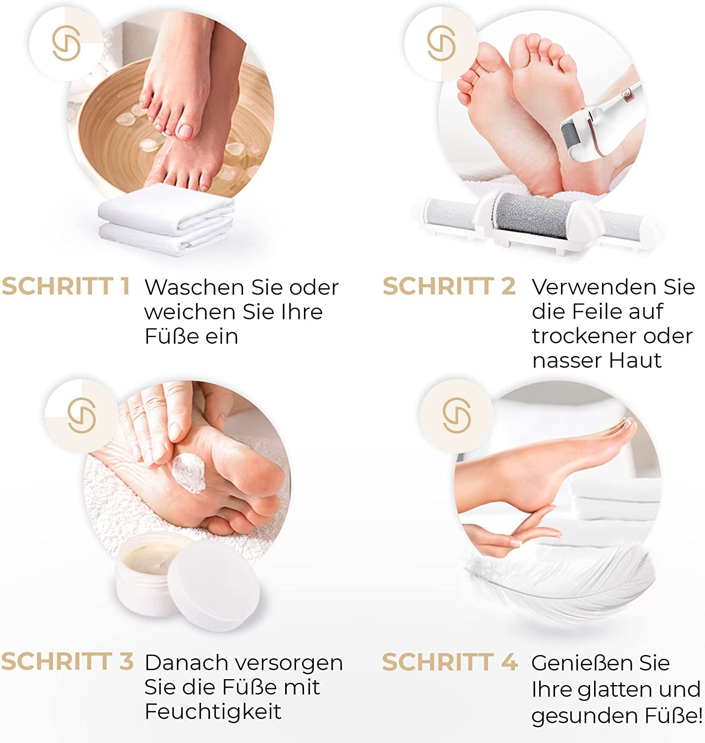 - EFFIZIENTES PEDIKÜRE SET FUßPFLEGE: Möchten Sie einen manuellen Hornhauthobel vermeiden und schnell und seidige, glatte Füße haben? Sind Sie es leid Geld für Fußpflegegeräte-Termine zu verschwenden? Behandeln Sie Ihre Füße mühelos mit einer professionellen Prozedur - jederzeit und überall. Der Essy Premium Hornhauthobel hat 3 einer Arten von Walzen, die wiederaufladbar sind, um Ihren Bedürfnissen gerecht zu werden!